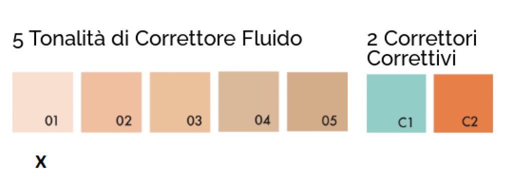 Le nuance sono state appositamente studiate per CORREGGERE LE DISCROMIE con precisione e facilità, grazie all’uso combinato delle tonalità correttive con quelle da abbinare all’incarnato.