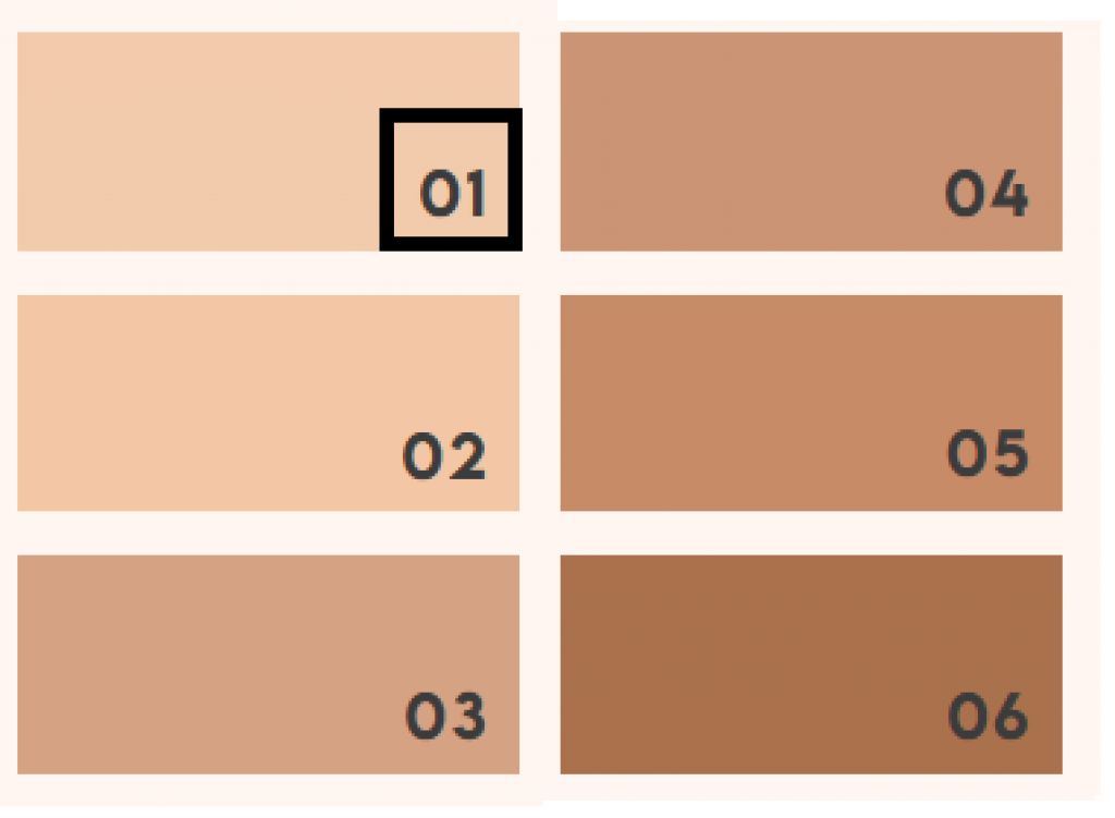 Tutte le tonalità hanno un sottotono giallo/neutro tranne la n.1 che ha un sottotono più rosato.