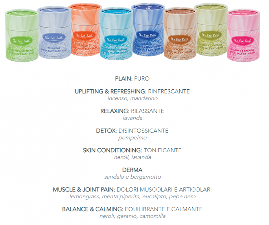 La miscela di oli essenziali unita ai Sali di Epsom dona un effetto aromaterapico e, a differenza di altri sali, non lascia la pelle secca. La loro azione esfoliante, emolliente ed ammorbidente assicura un bagno rilassante, preservando l’equilibrio fisiologico della pelle.