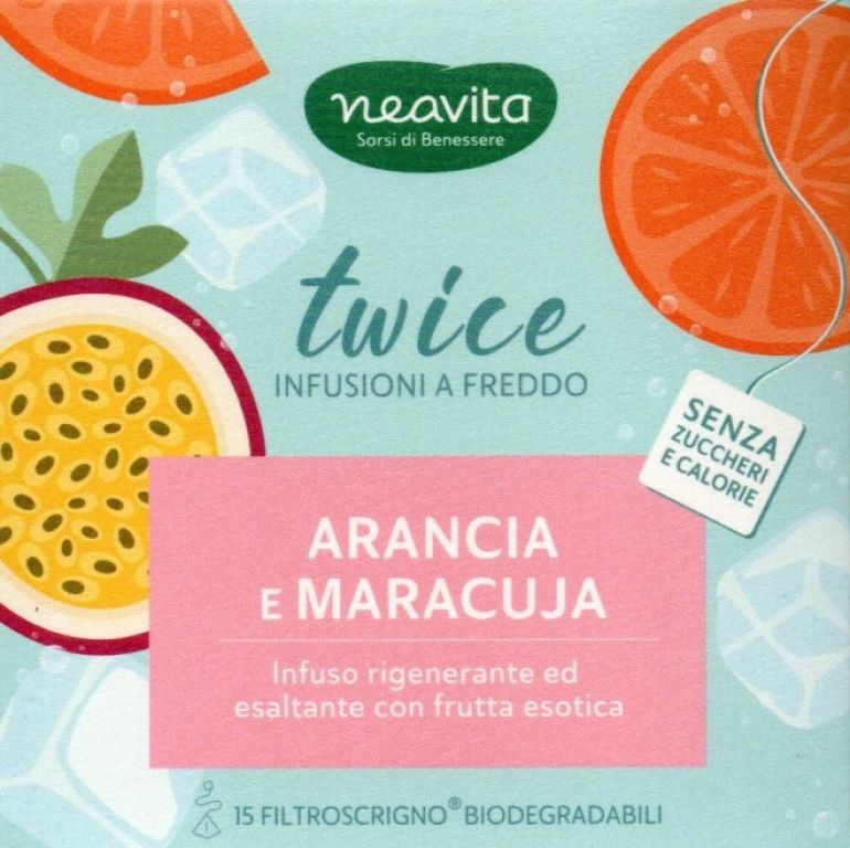 INGREDIENTI: fiori di ibisco, aromi naturali di arancia e maracuja (15%), scorze d'arancia (10%), bacche di rosa canina, radici di liquirizia, mela, foglie di stevia, succo di maracuja granulato (0,50%).