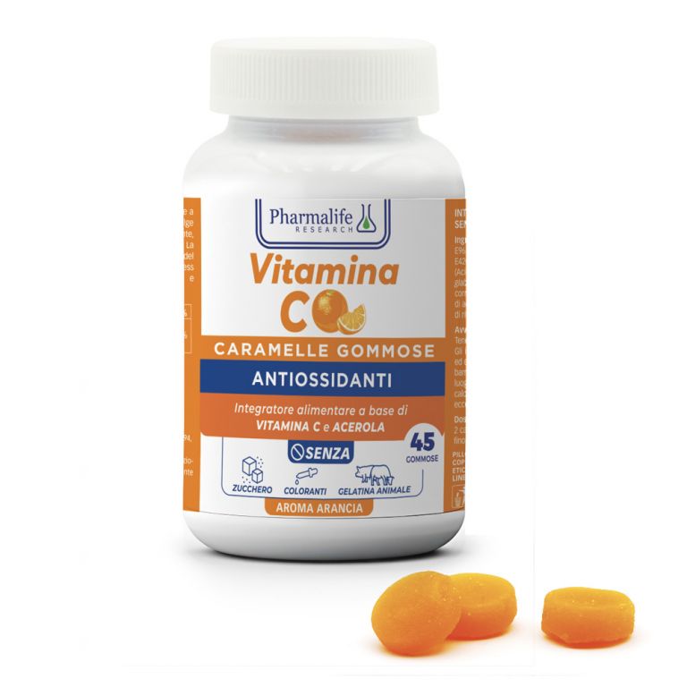 Vitamina C Caramelle Gommose è un integratore alimentare in pratiche caramelle gommose a base di estratti vegetali e Vitamine. Svolge un’azione antiossidante, di sostegno e ricostituente, promuove inoltre le naturali difese dell’organismo. Contribuisce al normale funzionamento del sistema immunitario, protegge le cellule dallo stress ossidativo e favorisce la riduzione di stanchezza e affaticamento.