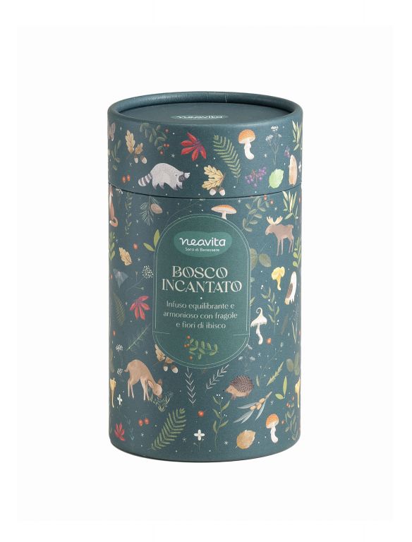 Contiene 10 filtroscrigno di BOSCO INCANTATO: pezzi di mela, fiori di ibisco, foglie di lemongrass, pezzi di arancia, aromi, aroma naturale di limone, fiori di elicriso, pezzi di fragola